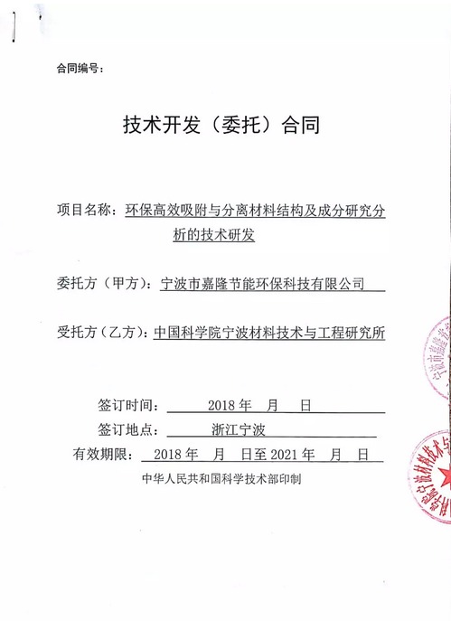 寧波市嘉隆節(jié)能環(huán)保科技有限公司(以下簡(jiǎn)稱“公司”)于近日與中國(guó)科學(xué)院寧波材料技術(shù)與工程研究所簽署了《環(huán)保高效吸附與分離材料結(jié)構(gòu)及成分研究分析的技術(shù)研發(fā)》。合同簽署后公司與中科院進(jìn)行了深入的溝通,啟動(dòng)了相關(guān)項(xiàng)目的科研工作,現(xiàn)將合作環(huán)保高效吸附與分離材料結(jié)構(gòu)及成分研究分析的技術(shù)研發(fā)項(xiàng)目的相關(guān)事宜公告如下: