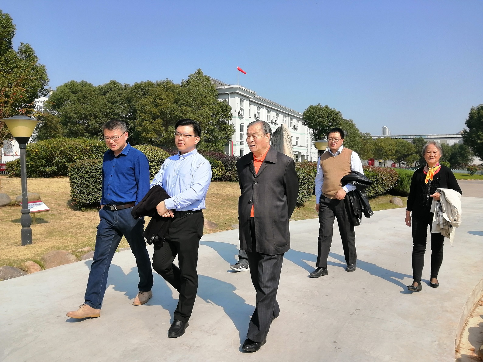 上午,金教授在樊董的陪同下參觀了上虞生產基地廠區、企業發展(產品)展示廳和黨建展廳及研發大樓實驗室。