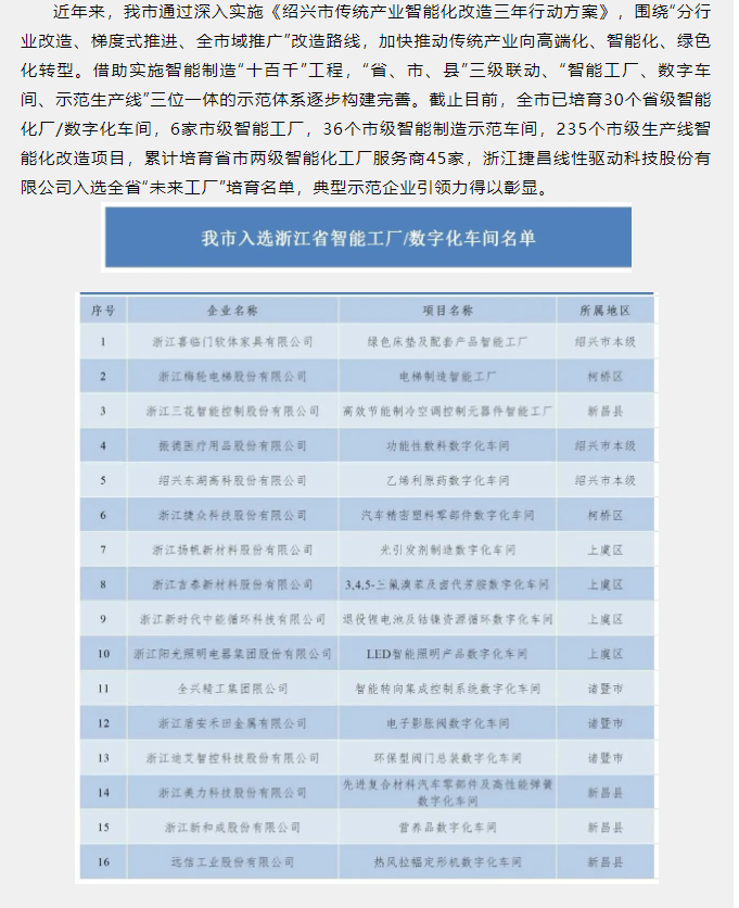 近日,浙江省經(jīng)濟和信息化廳公布關(guān)于2020年浙江省數(shù)字化車間/智能工廠的名單,浙江揚帆新材料股份有限公司(300637)光引發(fā)劑制造數(shù)字化車間榮獲2020年浙江省數(shù)字化車間稱號。