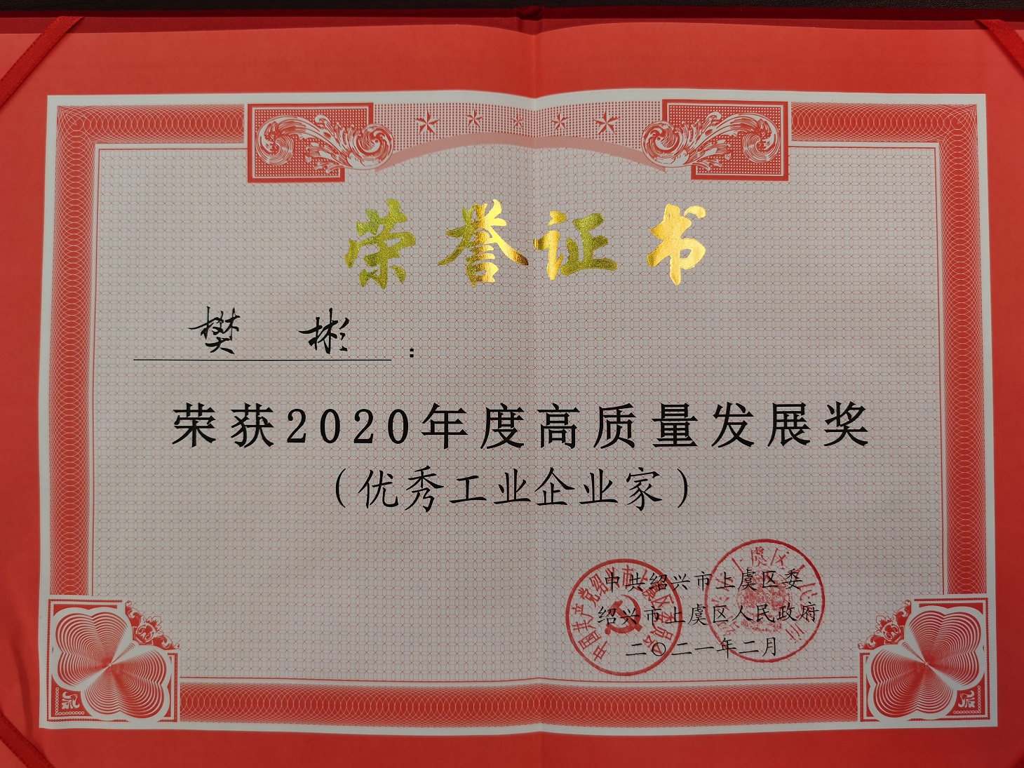 近日,上虞區(qū)委召開了2021年經(jīng)濟(jì)工作會(huì)議。揚(yáng)帆新材董事長(zhǎng)樊彬應(yīng)邀參加了此次會(huì)議,并榮獲“2020年度高質(zhì)量發(fā)展獎(jiǎng)(優(yōu)秀工業(yè)企業(yè)家)”榮譽(yù)稱號(hào)。